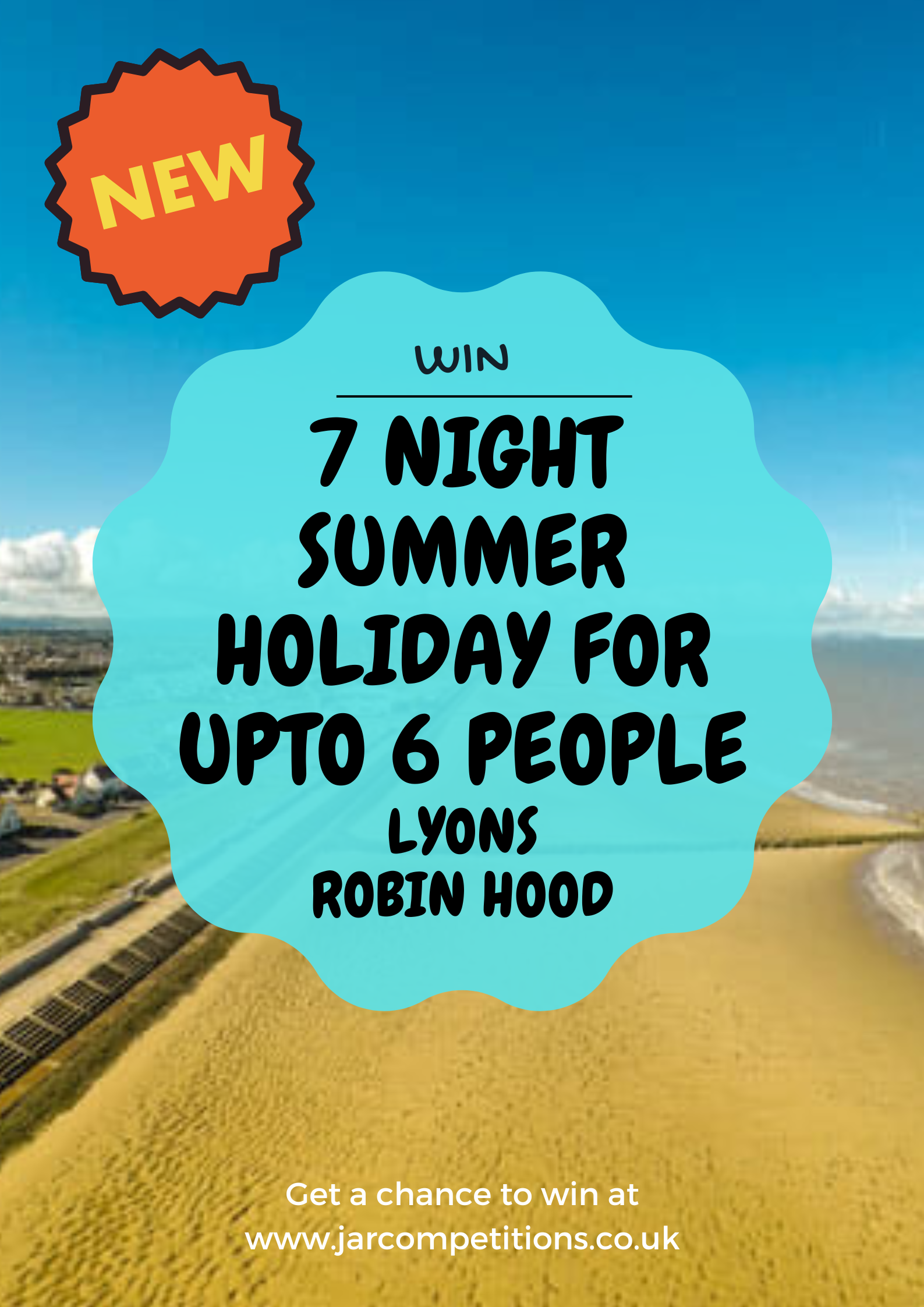 Win a 7 night summer holiday at Lyons Robin Hood, the winning ticket will be chose at random when the competition ends or the tickets sell out. We also have some instant wins available. if you get the instant win ticket as one of your tickets you will receive an email to confirm your prize.